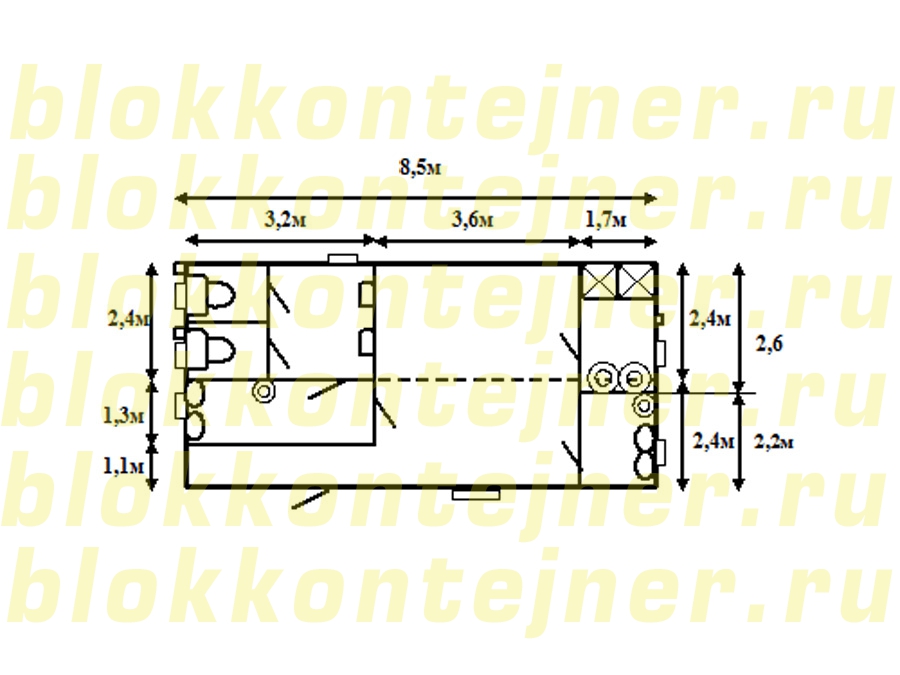 ГлавнаяПроекты Коммерческие предложения → Санитарно-бытовой модуль из 2-х шт БК